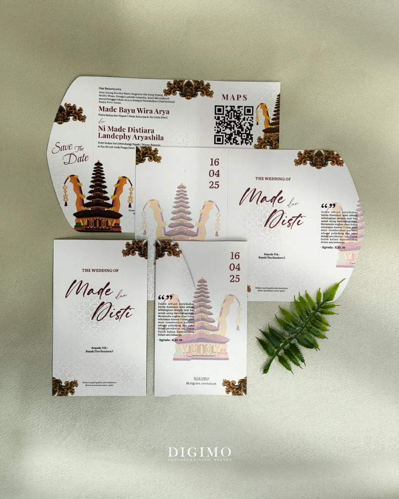 Amplop dirancang dengan warna senada untuk menciptakan kesatuan visual yang harmonis, cocok untuk konsep pernikahan minimalis, rustic, klasik modern, hingga garden wedding. Detail kecil seperti lipatan presisi dan permukaan kertas yang halus menjadikan undangan terasa rapi dan berkelas saat dipegang.
