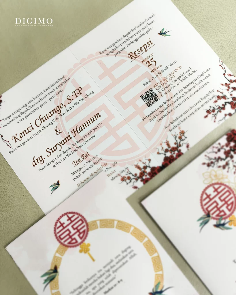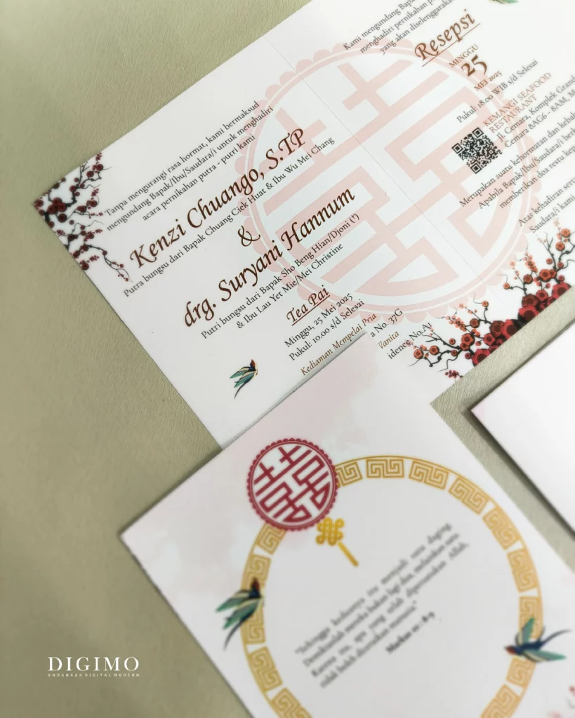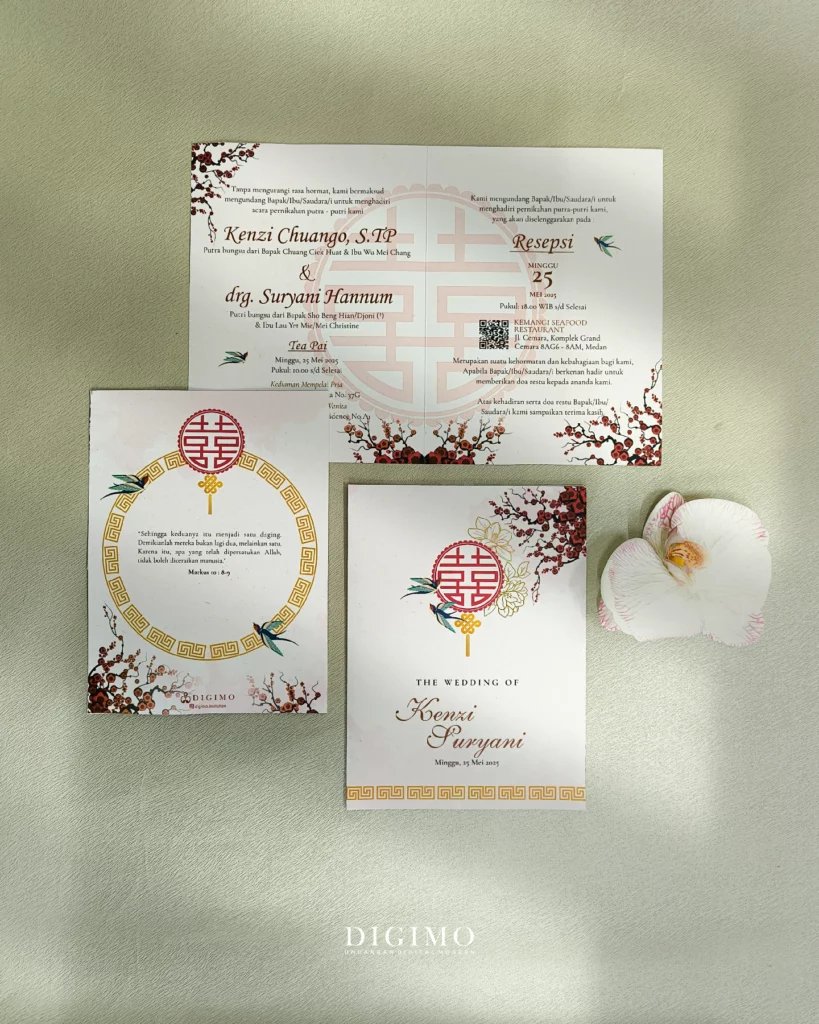 Amplop dirancang dengan warna senada untuk menciptakan kesatuan visual yang harmonis, cocok untuk konsep pernikahan minimalis, rustic, klasik modern, hingga garden wedding. Detail kecil seperti lipatan presisi dan permukaan kertas yang halus menjadikan undangan terasa rapi dan berkelas saat dipegang.
