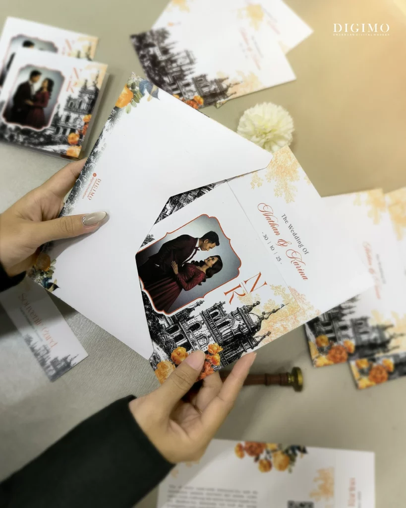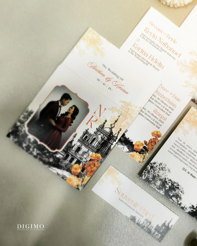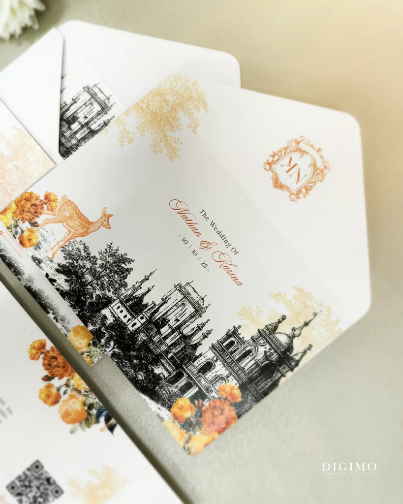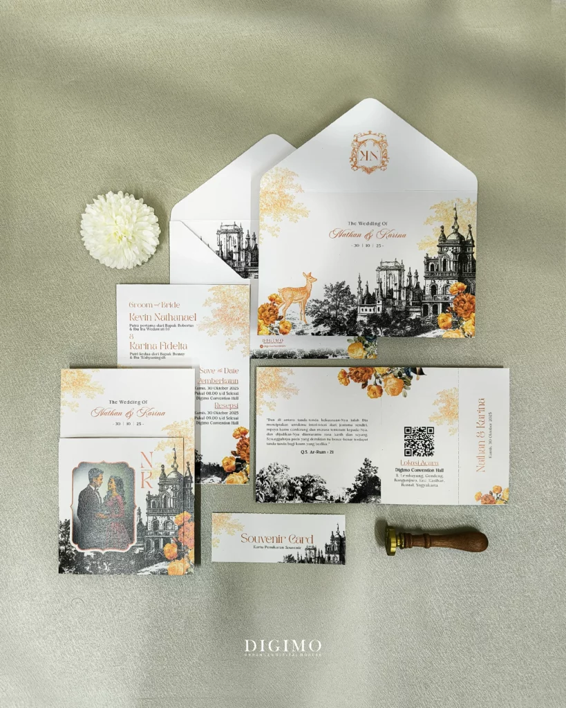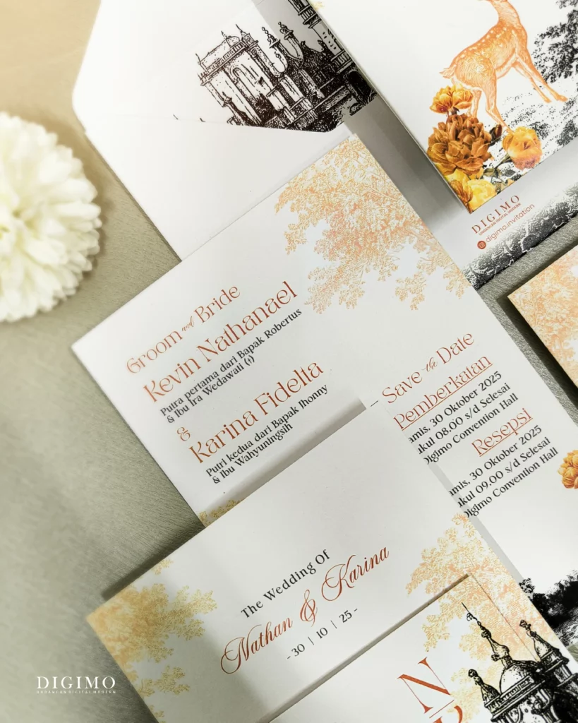 Amplop dirancang dengan warna senada untuk menciptakan kesatuan visual yang harmonis, cocok untuk konsep pernikahan minimalis, rustic, klasik modern, hingga garden wedding. Detail kecil seperti lipatan presisi dan permukaan kertas yang halus menjadikan undangan terasa rapi dan berkelas saat dipegang.