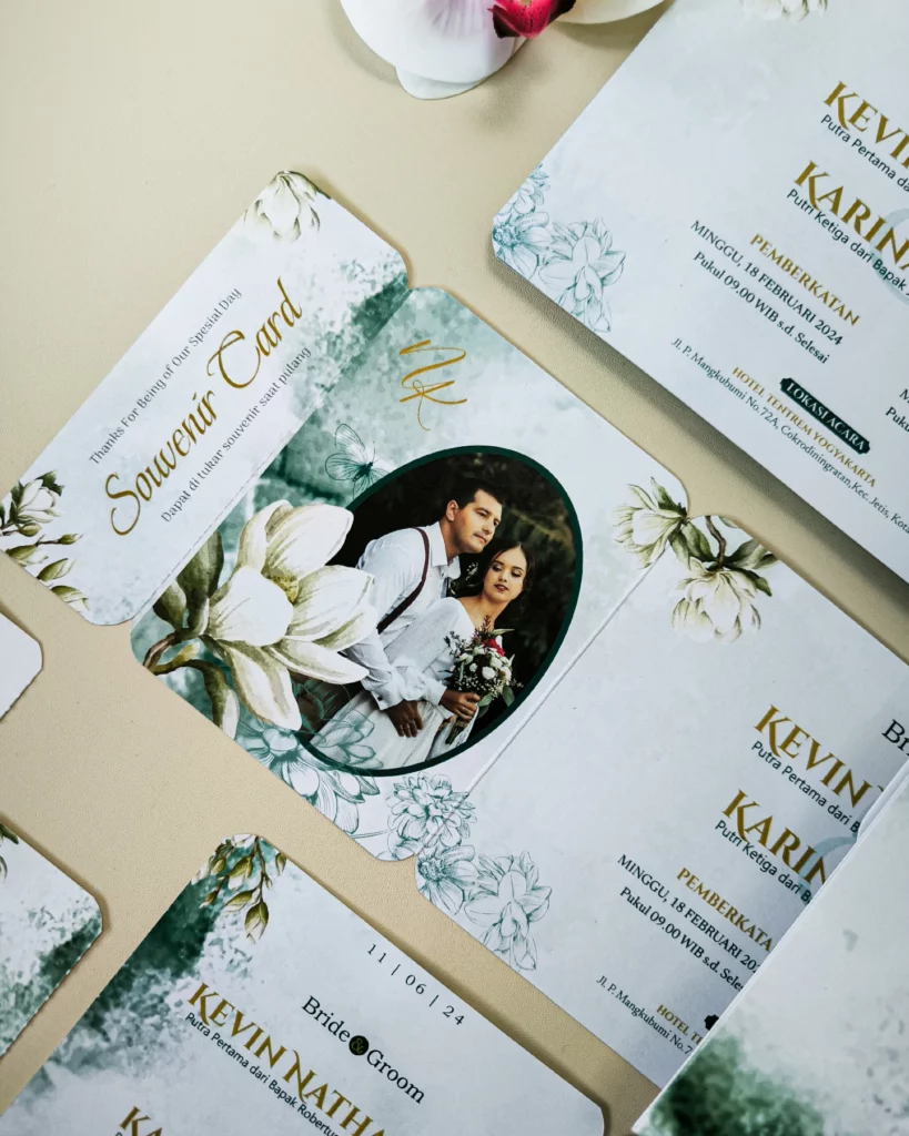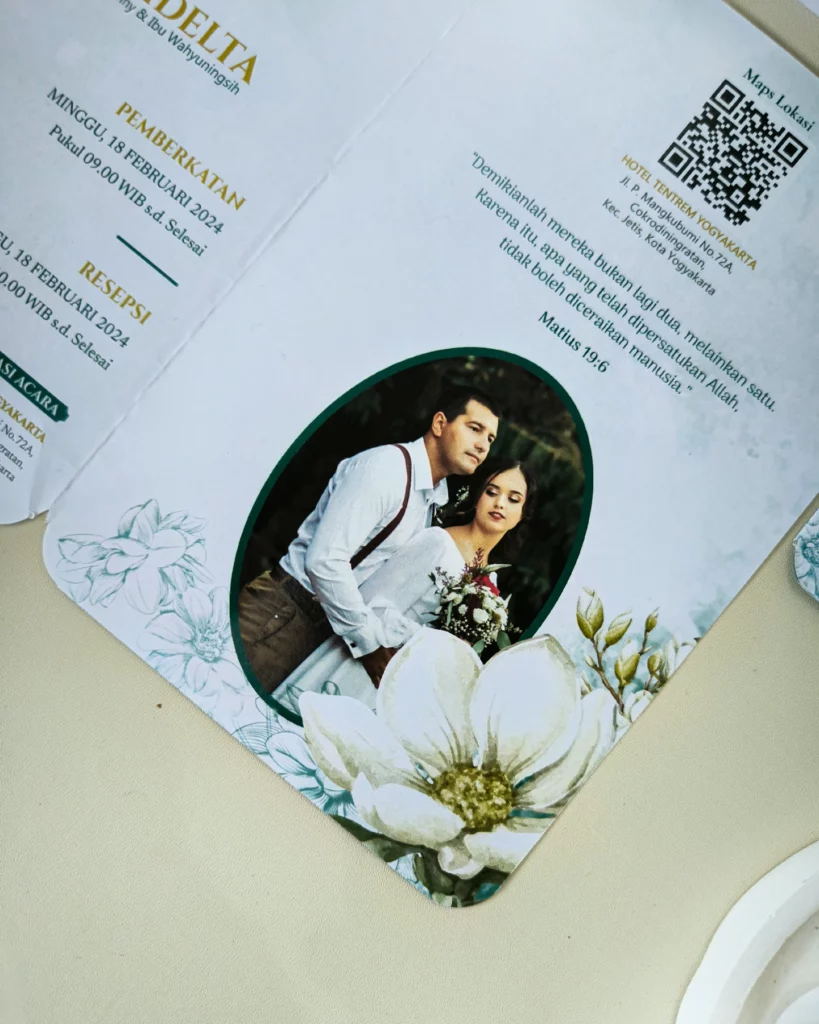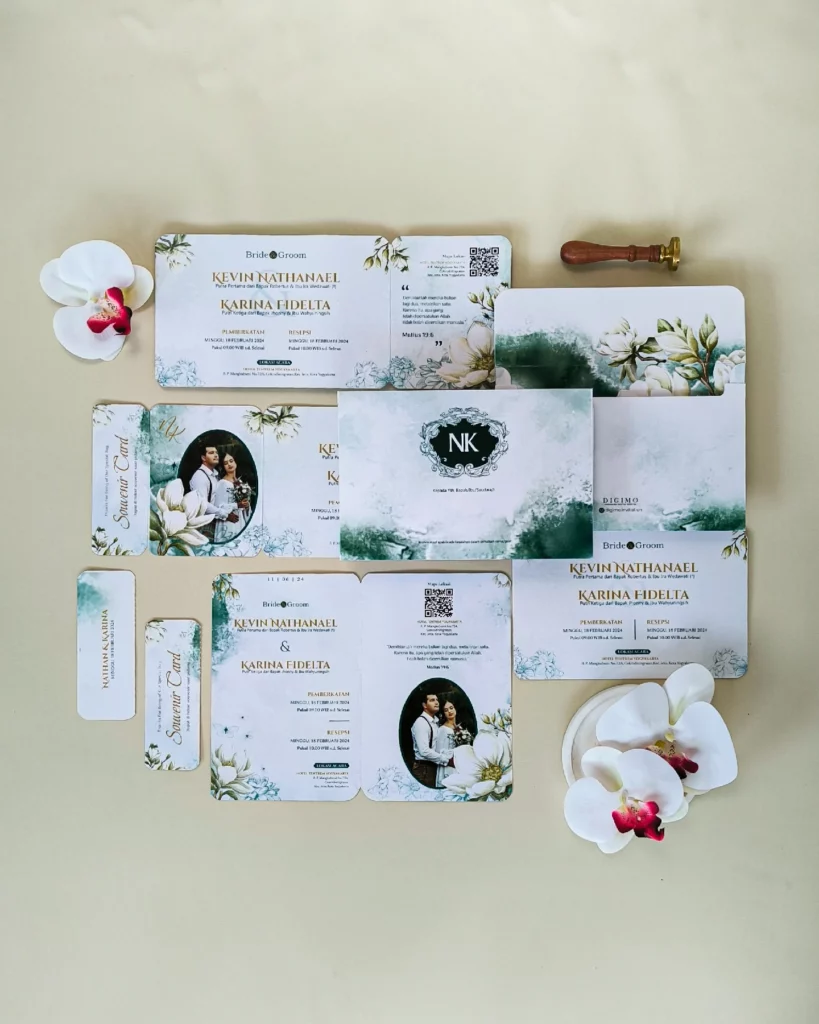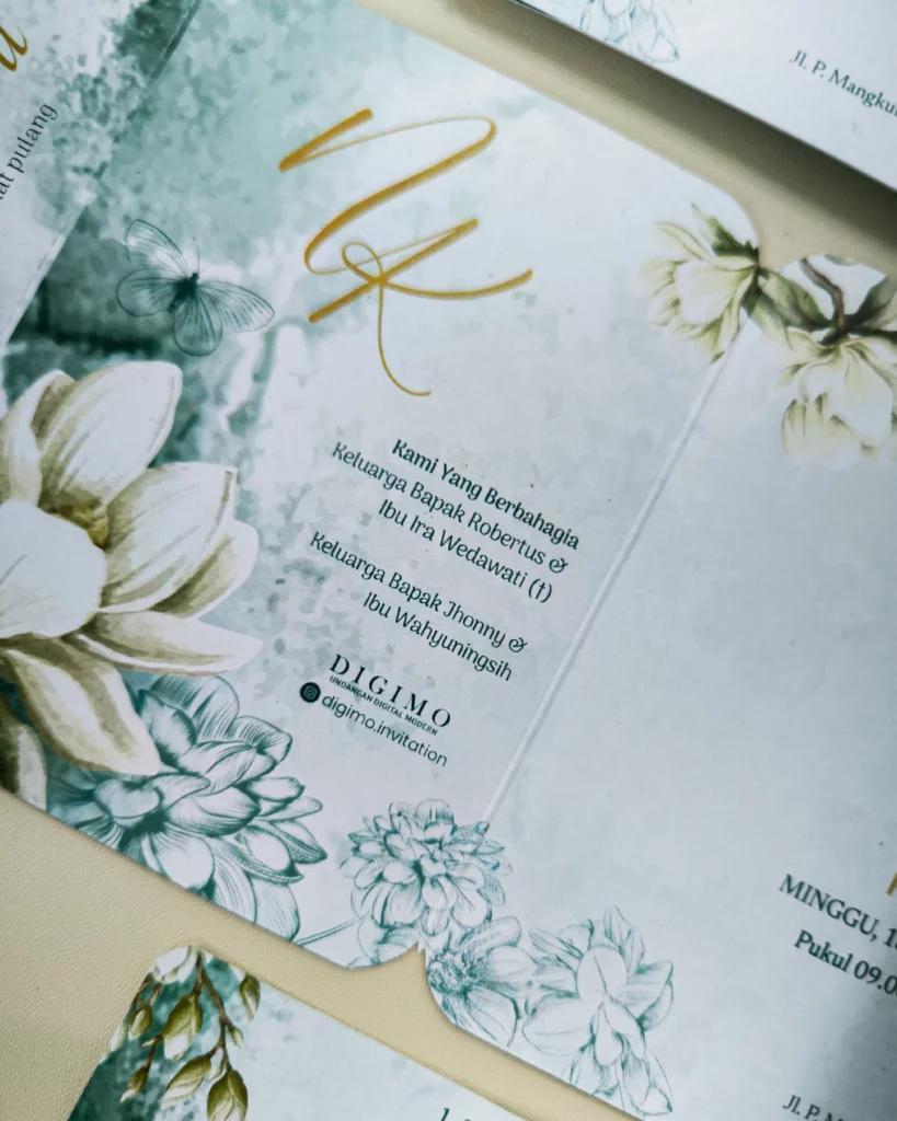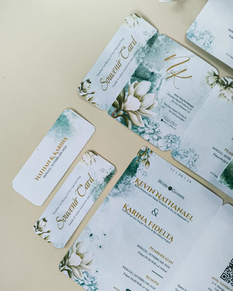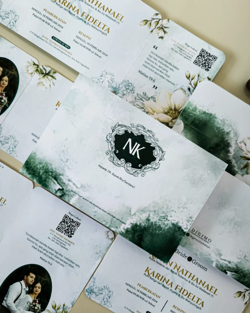 Amplop dirancang dengan warna senada untuk menciptakan kesatuan visual yang harmonis, cocok untuk konsep pernikahan minimalis, rustic, klasik modern, hingga garden wedding. Detail kecil seperti lipatan presisi dan permukaan kertas yang halus menjadikan undangan terasa rapi dan berkelas saat dipegang.