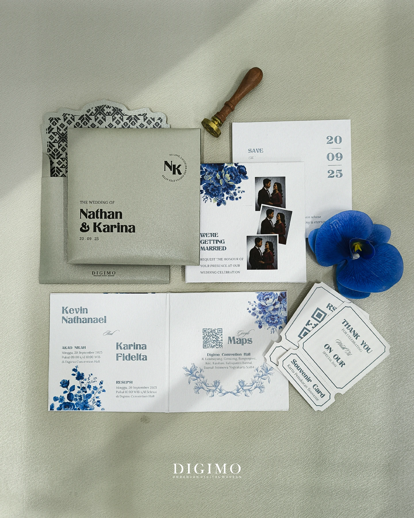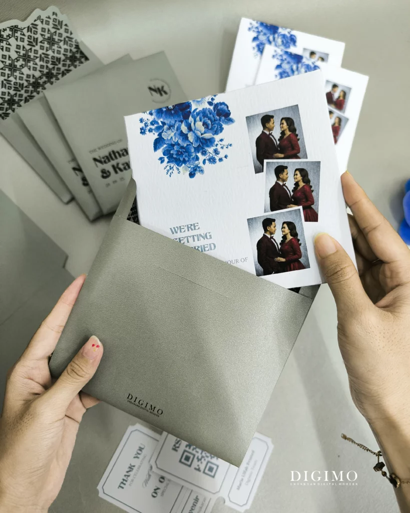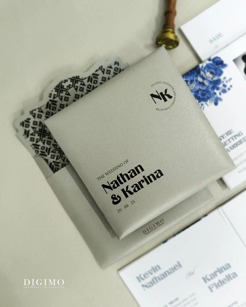 Amplop dirancang dengan warna senada untuk menciptakan kesatuan visual yang harmonis, cocok untuk konsep pernikahan minimalis, rustic, klasik modern, hingga garden wedding. Detail kecil seperti lipatan presisi dan permukaan kertas yang halus menjadikan undangan terasa rapi dan berkelas saat dipegang.
