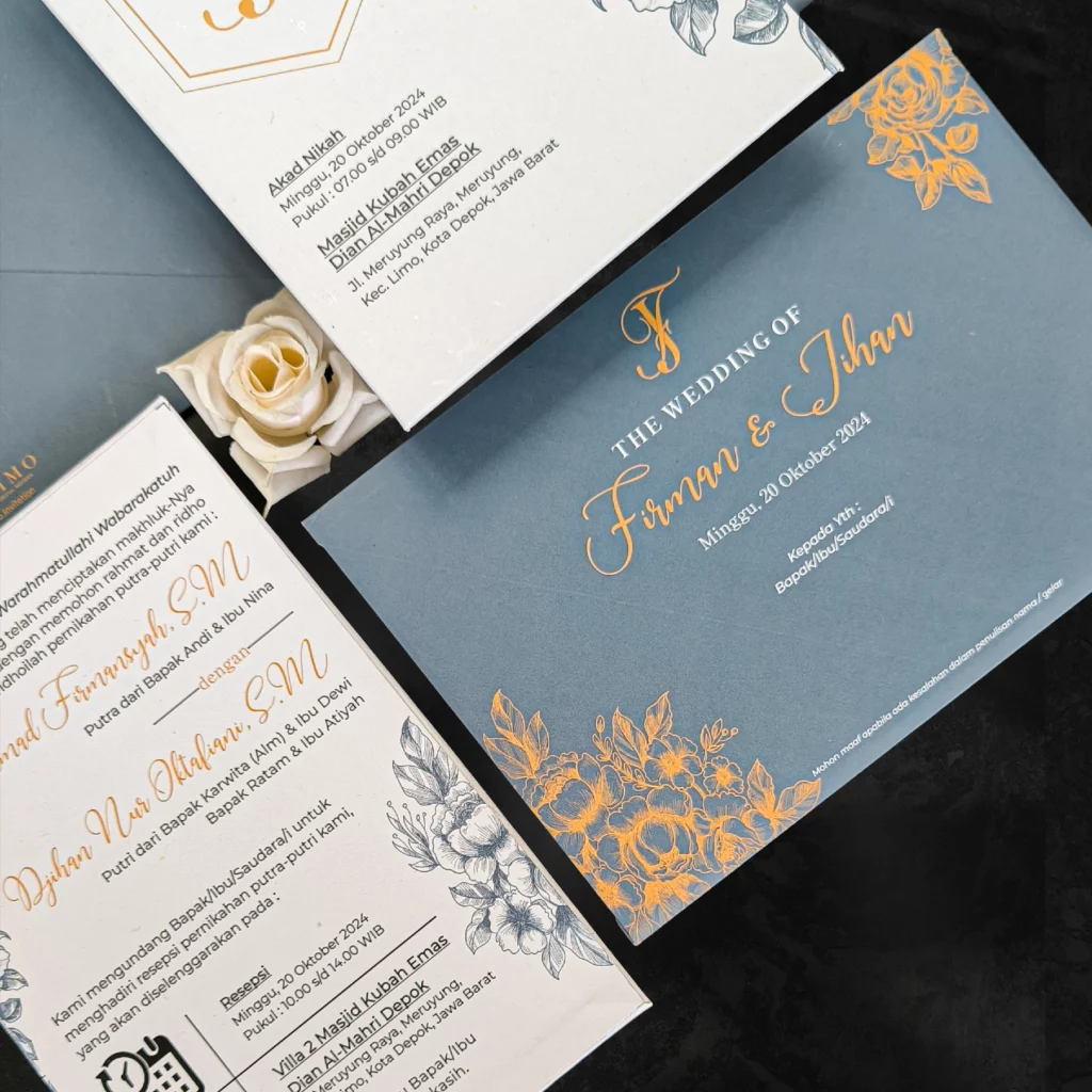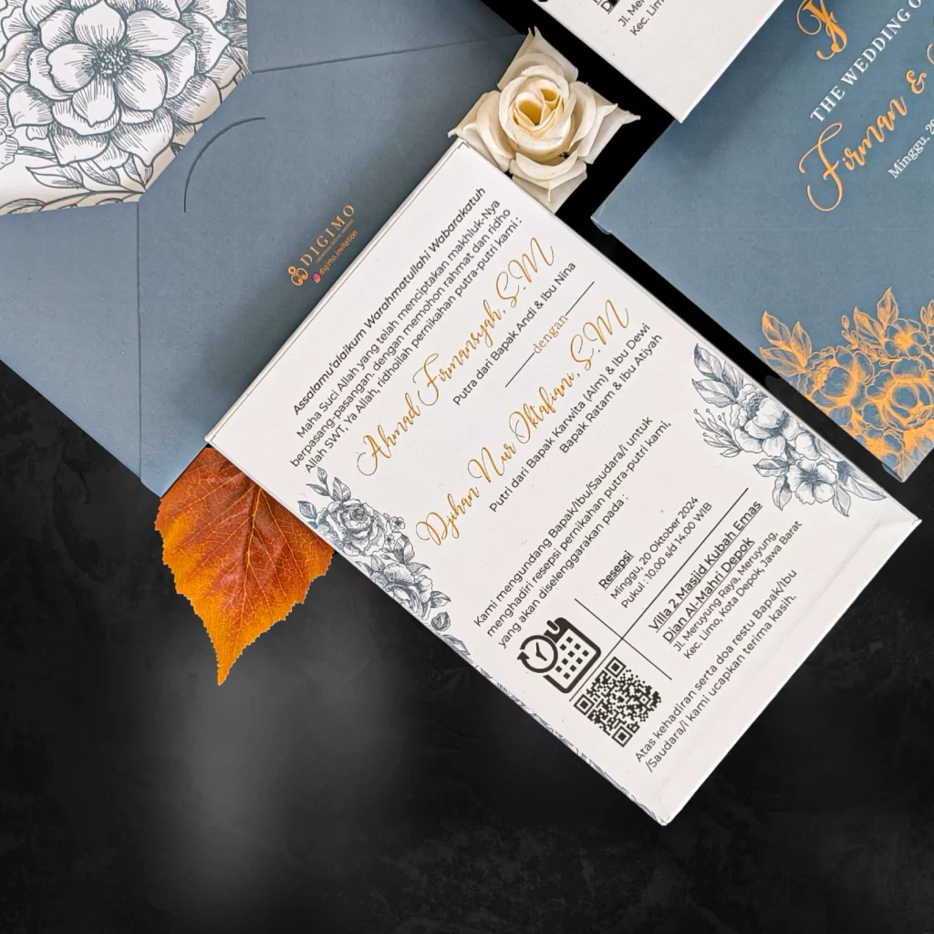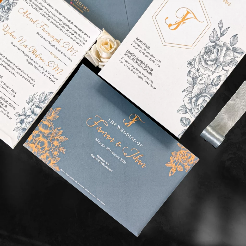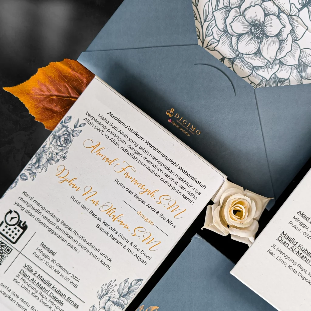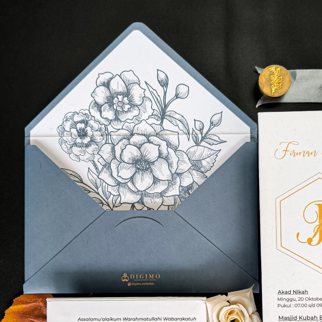 Amplop dirancang dengan warna senada untuk menciptakan kesatuan visual yang harmonis, cocok untuk konsep pernikahan minimalis, rustic, klasik modern, hingga garden wedding. Detail kecil seperti lipatan presisi dan permukaan kertas yang halus menjadikan undangan terasa rapi dan berkelas saat dipegang.
