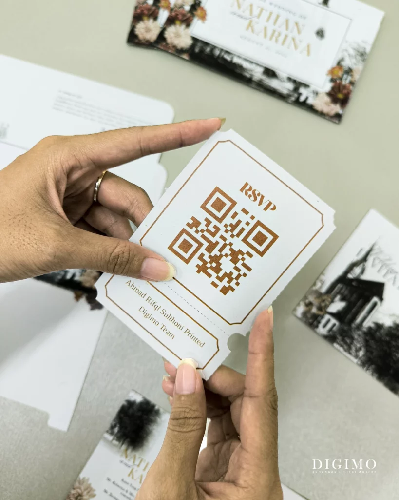 Amplop dirancang dengan warna senada untuk menciptakan kesatuan visual yang harmonis, cocok untuk konsep pernikahan minimalis, rustic, klasik modern, hingga garden wedding. Detail kecil seperti lipatan presisi dan permukaan kertas yang halus menjadikan undangan terasa rapi dan berkelas saat dipegang.
